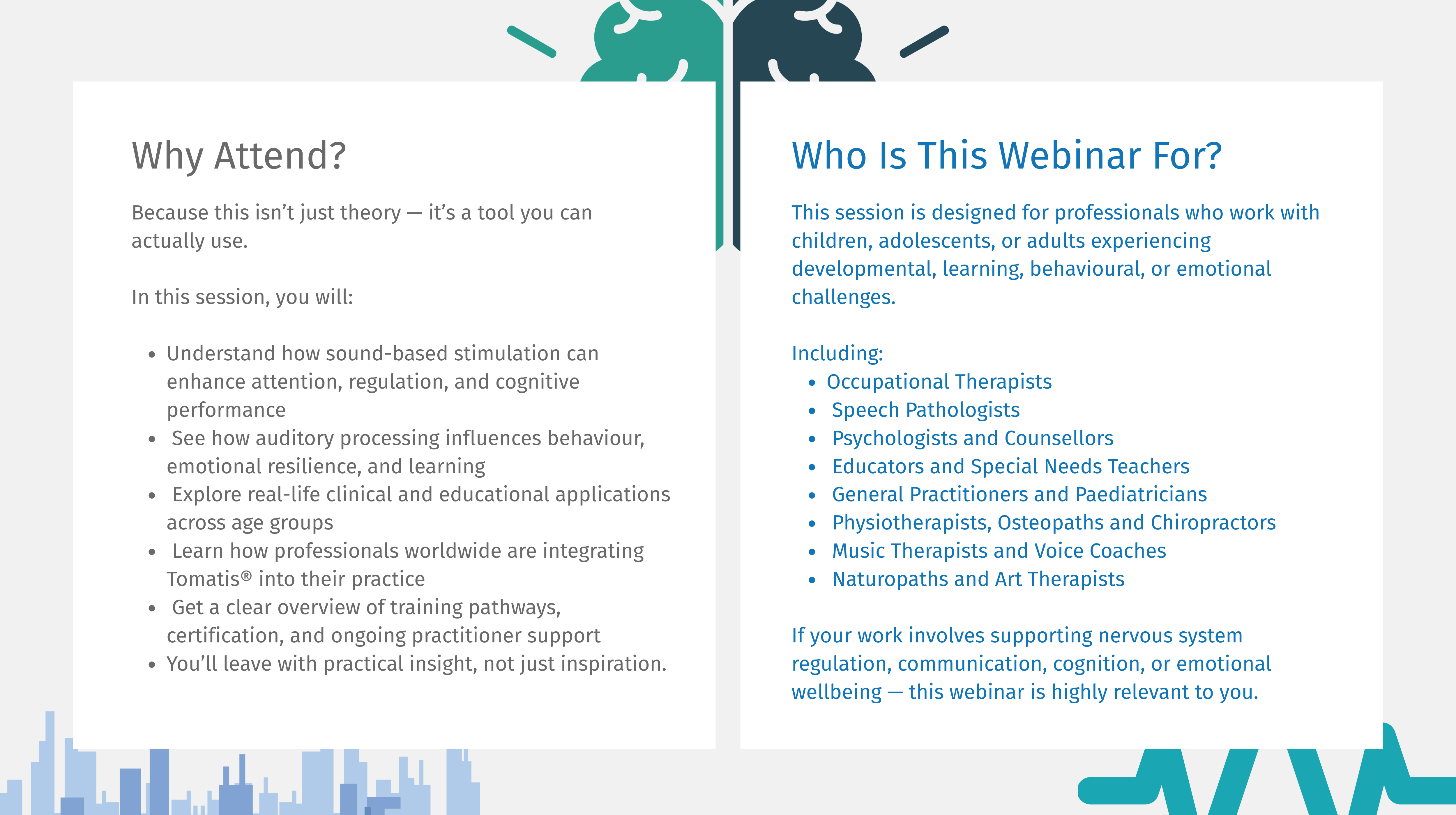 Whether you work in allied health, education, psychology, or integrative practice, this webinar will show you how the Tomatis® Method can complement your current work and help unlock new possibilities for client outcomes.