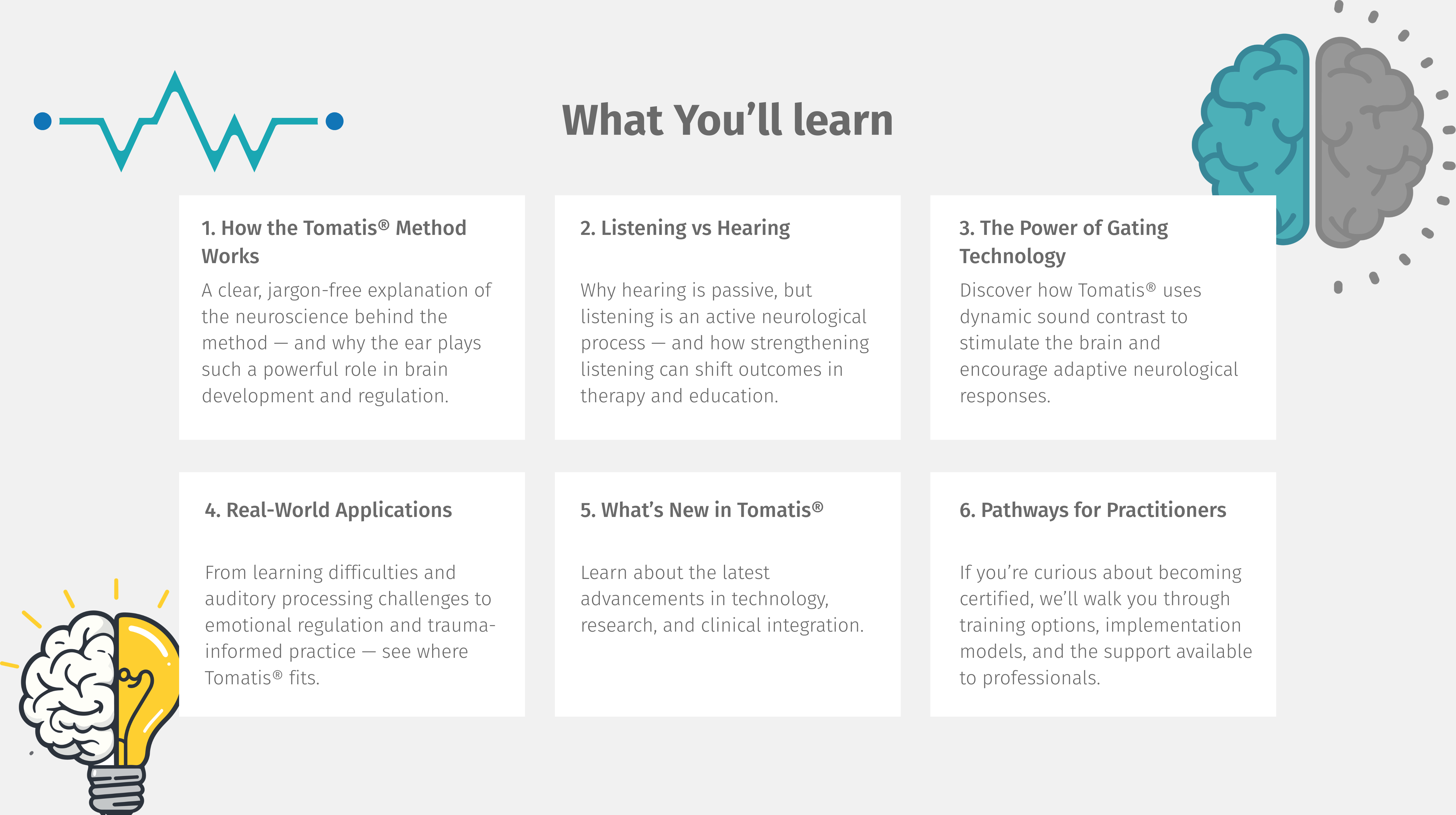 Join us for an insightful introduction to the Tomatis® Method, an innovative neurosensory approach that uses sound stimulation to activate the brain, encourage neuroplasticity, and support improvements in attention, regulation, communication, and learning.